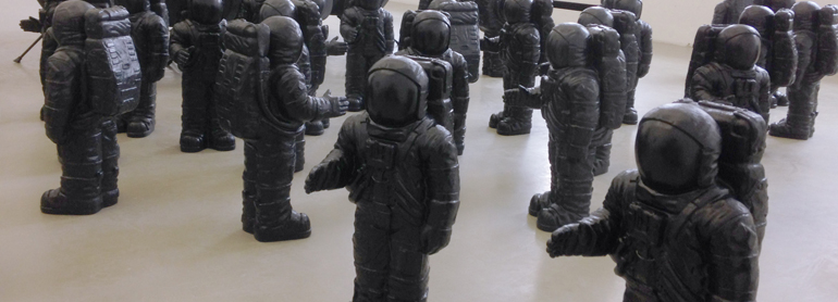 Unter dem Titel „Grüßt‘ Euch!“ installiert Ottmar Hörl in einer Doppelausstellung zusammen mit Urban Hüter im Kunstforum Rottweil dutzende Astronauten, welche die Besucher mit offener Geste begrüßen.