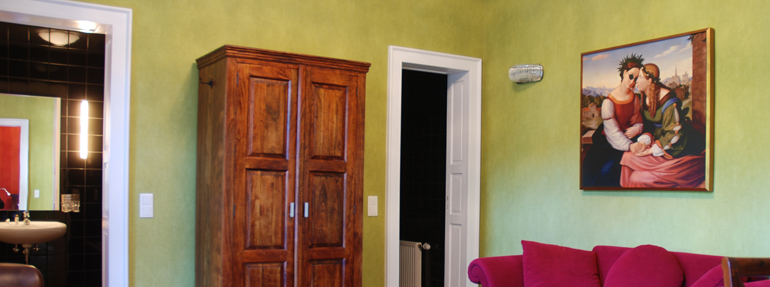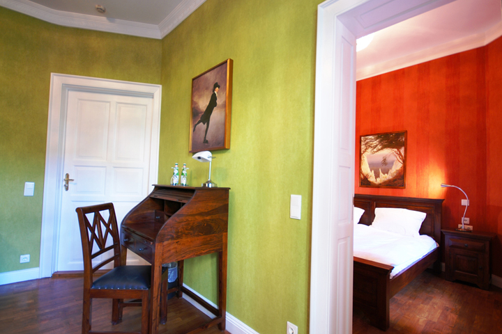 Die Übernachtung in der Suite ist gleichzeitige eine Einladung, die vertrauten und bekannten Gemälde in Ruhe auf sich wirken zu lassen und auf Entdeckungsreise zu gehen. Was stört Sie an den Bildern?