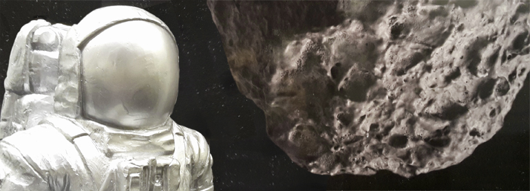 Unter dem Titel „Reisebegleiter“ ziehen Asteroiden, in großformatigen Fotoarbeiten festgehalten, in der schwarzen Tiefe des Raumes ihre Bahnen. Forscher vermuten, dass im Sonnensystem Millionen von Asteroiden existieren, bekannt sind bis heute etwa 702.096. Allerdings stammen die abgebildeten Exemplare weder aus dem Universum, noch sind es Aufnahmen der NASA, sondern aus der eigenen Herstellung des Künstlers. Somit erweitert Ottmar Hörl die Fotografie um die Dimension des Skulpturalen, stellt gleichzeitig die Wahrnehmung von Wirklichkeit in Frage und verweist auf die elementare Idee des Schöpferischen.