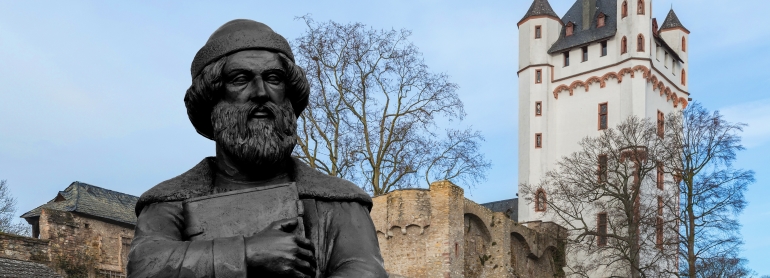 Die Ausstellungsmacher wollen damit den Fokus zugleich bewusst auf Gutenbergs Heimat legen: Auf das alte „Kur-Mainz“, in dem er geboren und wohl auch gestorben ist, sowie auf Eltville am Rhein, in dessen Kurfürstlicher Burg ihm 1465 die einzige Ehrung seines Lebens durch Kurfürst Adolph II von Nassau zu Teil wurde.