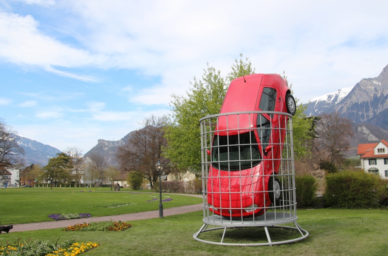 Ein roter VW-Golf steckt in einem riesigen Abfallkorb in idyllischer Parklandschaft und verblüfft Passanten. Ist es das Werk eines Umweltaktivisten, der auf die Klimakrise und Müllproblematik aufmerksam machen will? Oder ein Hinweis auf den Wandel überkommener Verkehrs- und Mobilitätskonzepte? Vielleicht auch ein Zeichen für die Beschränkung der Reisemöglichkeiten in Zeiten der Corona-Pandemie? > mehr