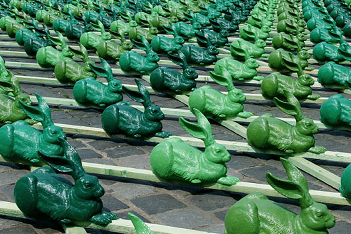 Nach langer Zeit sind die Dürer-Hasen in den Grüntönen der Original-Installation „Das große Hasenstück“ aus 2003 wieder lieferbar in maigrün, mintgrün, grasgrün und moosgrün. > mehr