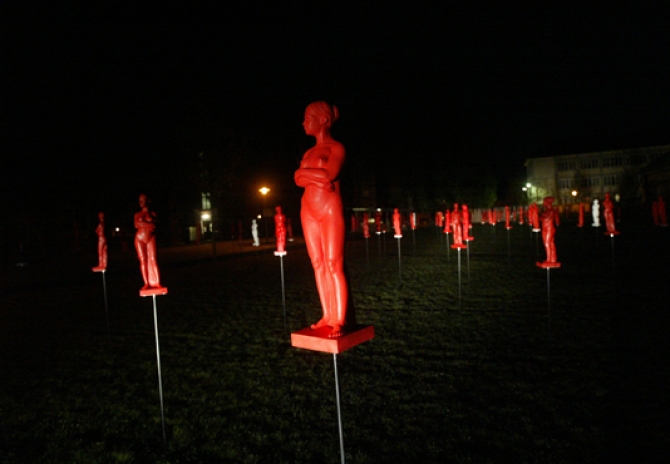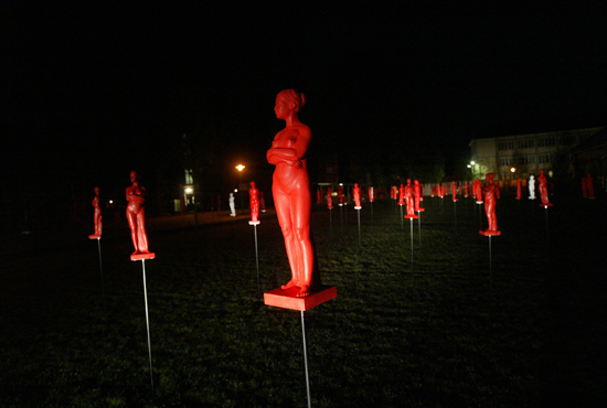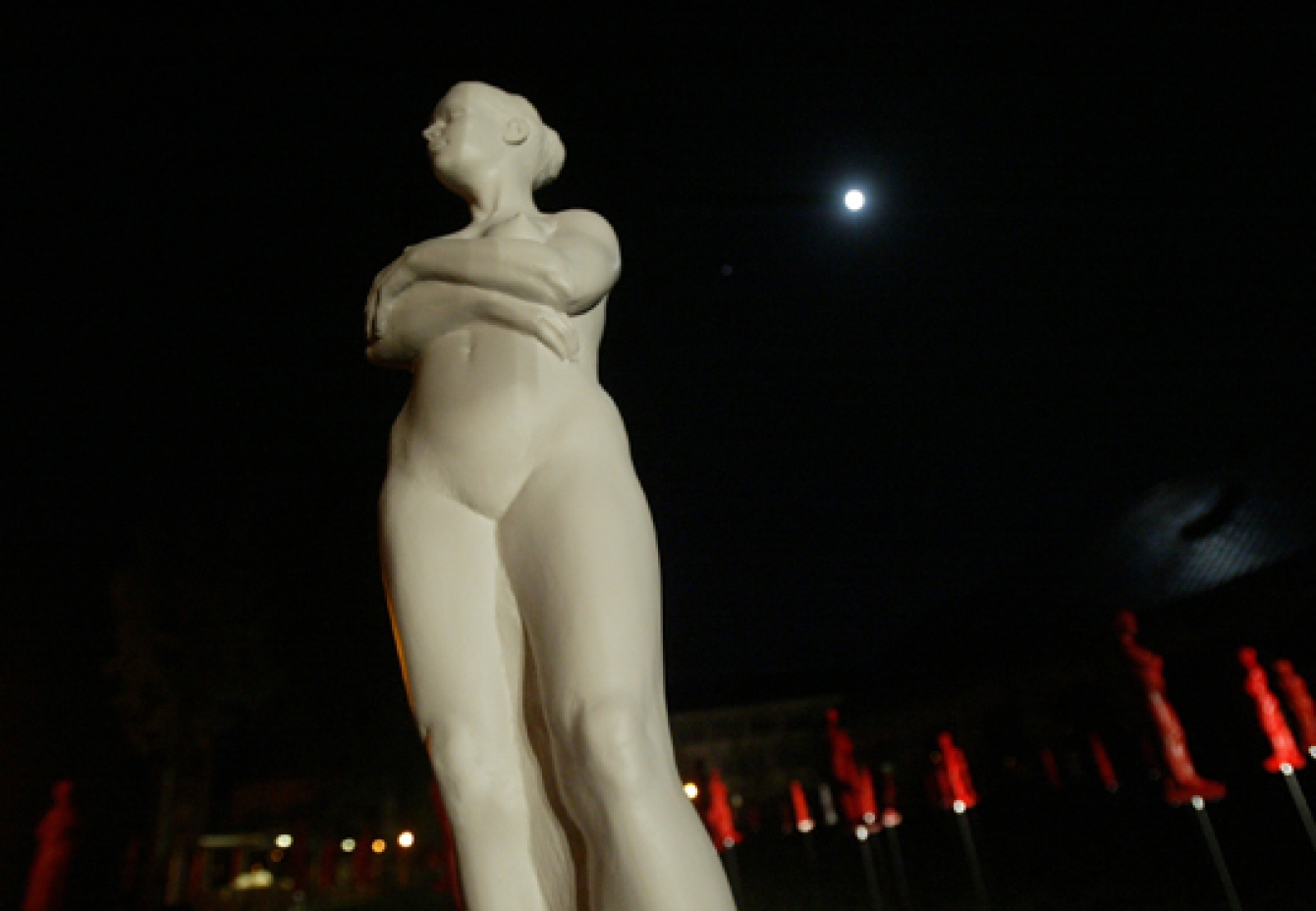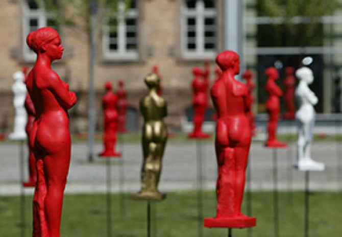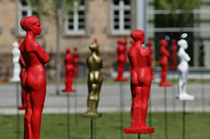 Unsere Venus in Offenburg ist weder Vamp noch Geliebte, sondern eine ganz normale Frau. Sie könnte auf dem Arbeitsamt arbeiten, in dem Café an der Ecke oder auf einem Bauernhof. Doch warum ist sie nackt? „Die Venus im Rock zu zeigen, hätte ich irgendwie blöd gefunden“, sagt ihr Macher, der Künstler Ottmar Hörl. Dabei sei ihre Nacktheit ja gar nicht so vordergründig. Und warum zeigt er sie gleich 500 Mal? Vielleicht, um sie aus dem Kontext des Denkmals zu lösen. Unbekleidete Gestalten, die aufreizend an Brunnenrändern auf öffentlichen Plätzen posen, haben wir schließlich genug. Unsere Nackte posiert nicht, ihre Haltung ist lässig. Und warum Plastik? Vielleicht, weil man dieses Material optimal vervielfältigen kann. Die Venus von Offenburg ist für alle da. Eine Hommage an die Frau, einfach so.