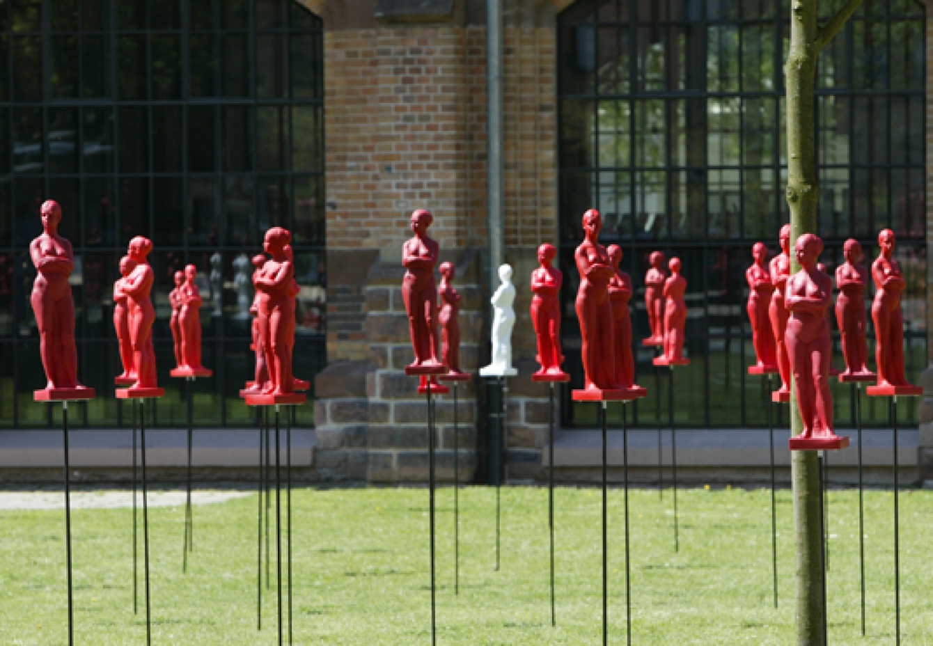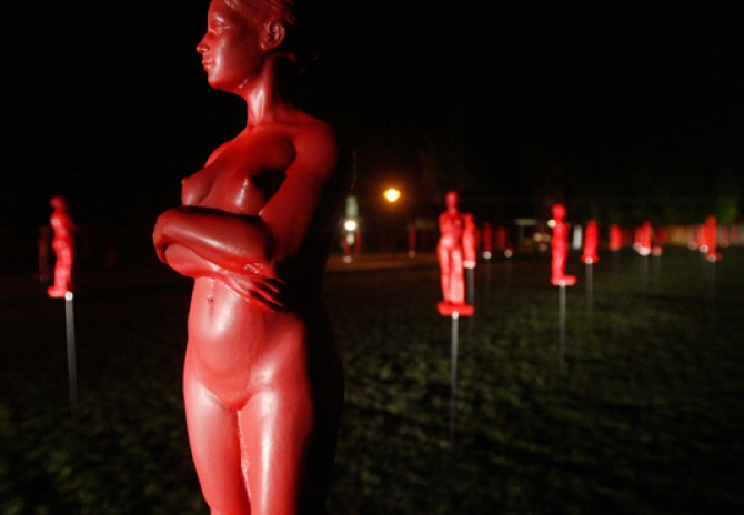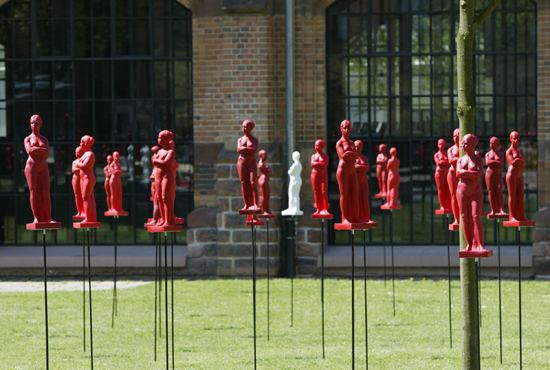 Etwa 500 Mal werden die Offenburger diese attraktive Nackte in diesem Frühjahr sehen. Sie kommen gar nicht darum herum. Denn so oft hat der Künstler seine rote Plastikfigur in der Parkanlage aufgestellt. Da blitzt sie zwischen Sträuchern, Bäumen und auf der Wiese. Ich bin eine Venus, will sie sagen. Bin ich schön?