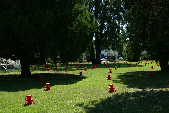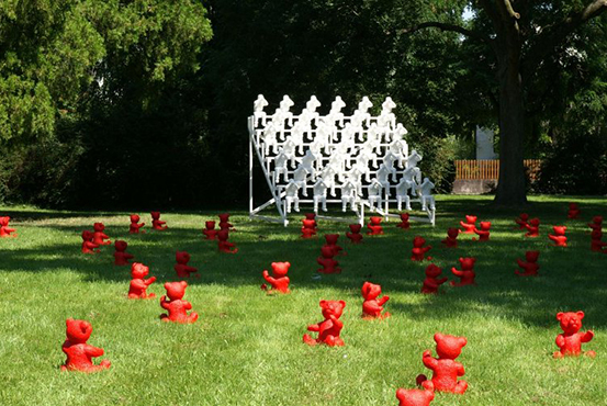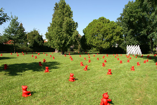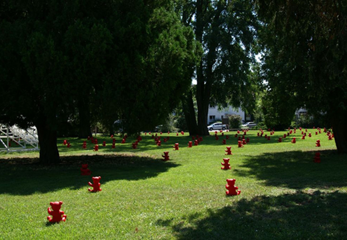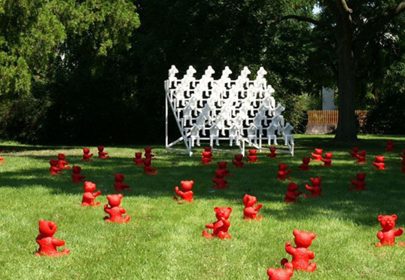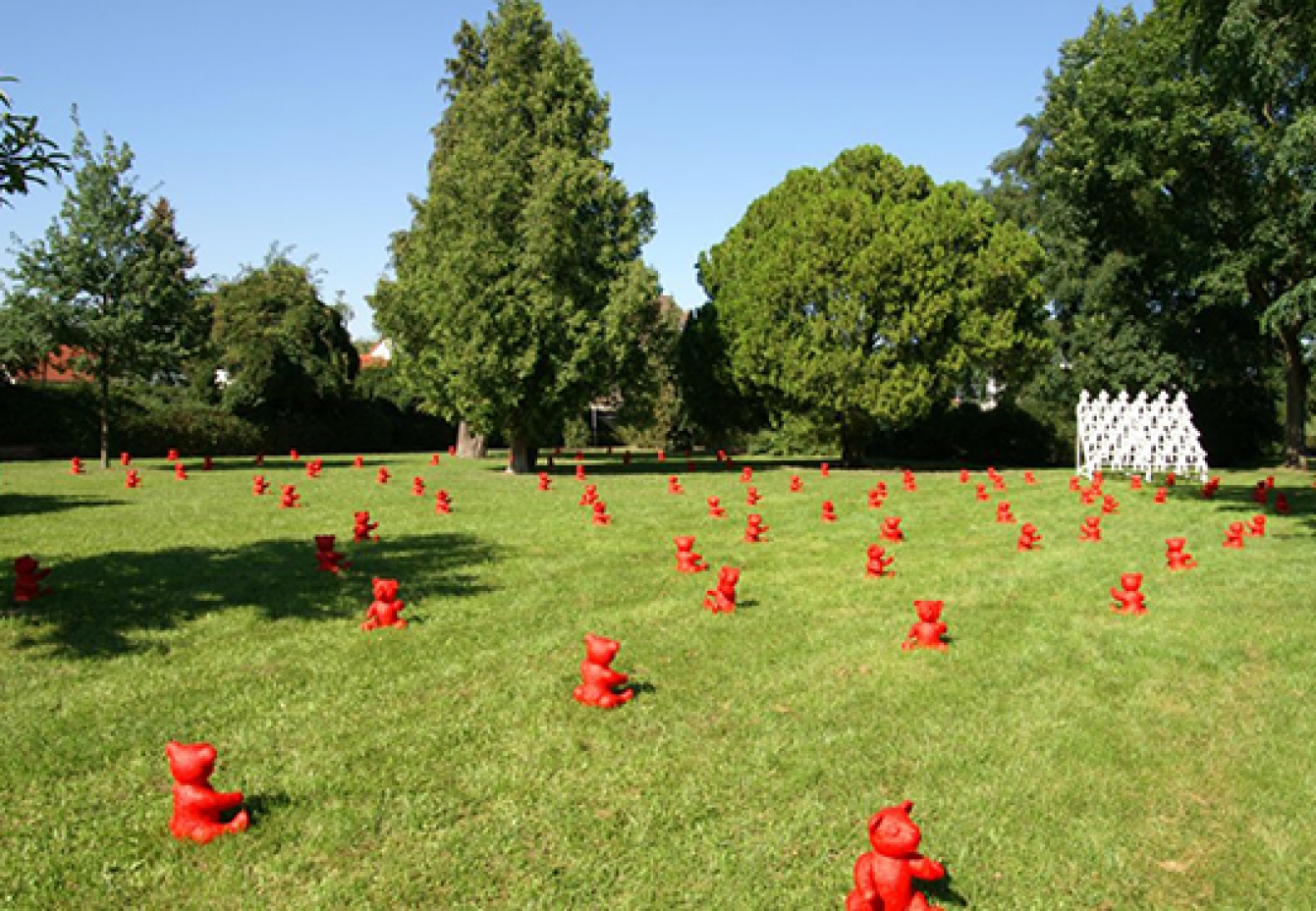 Der Skulpturenpark der Stadt Mörfelden-Walldorf feiert in diesem Jahr sein 10jähriges Bestehen. Er hat sich in den vergangen Jahren zu einer sehr erfolgreichen, weit über die Region hinaus anerkannten, Veranstaltung entwickelt. Unter dem Projekt-Titel „Der verlorene Traum“ installiert Prof. Ottmar Hörl 200 rote Teddy-Bären und weisse Weltanschauungsmodelle.