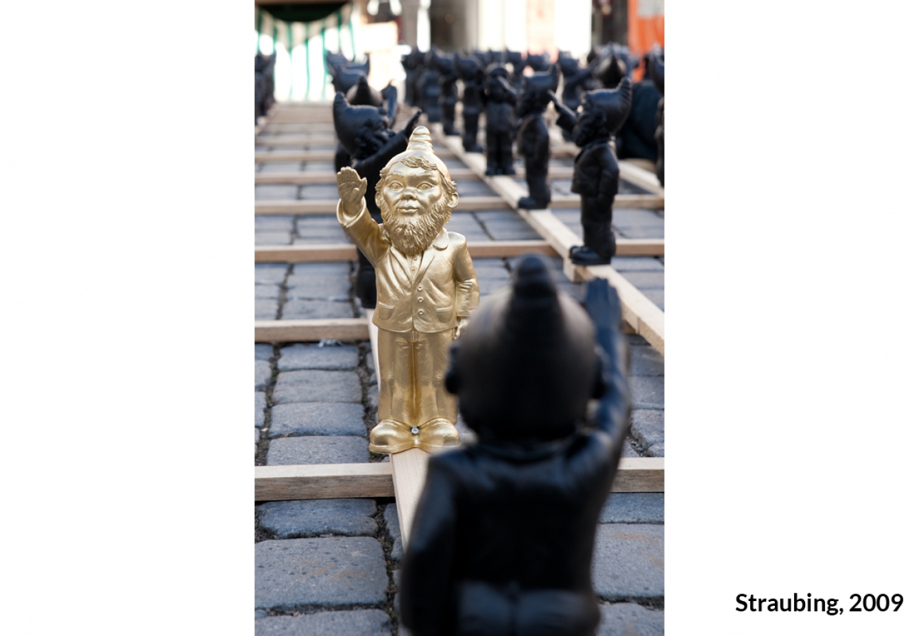 "Der Poisoned-Zwerg führt vor, dass die Menschen eine gefährliche Masse darstellen können, wenn Rituale und Gesten benutzt werden, die unter Umständen eher menschenverachtend als sozial förderlich sind. Er verweist zudem auf das gesellschaftliche Phänomen der Marke, die sich über massenpsychotische oder massenhysterische Positionen entwickelt: Das Heben des rechten Armes ist ein Markenzeichen geworden, das in einem übertragenen Sinn ähnlich auftritt, wie andere Marken auch. Wir sollten die Idee der Marke, des vereinnahmenden Zeichens, in Frage stellen, auf deren Qualität und deren Werte hin überprüfen – und uns nicht manipulieren lassen." (Ottmar Hörl)