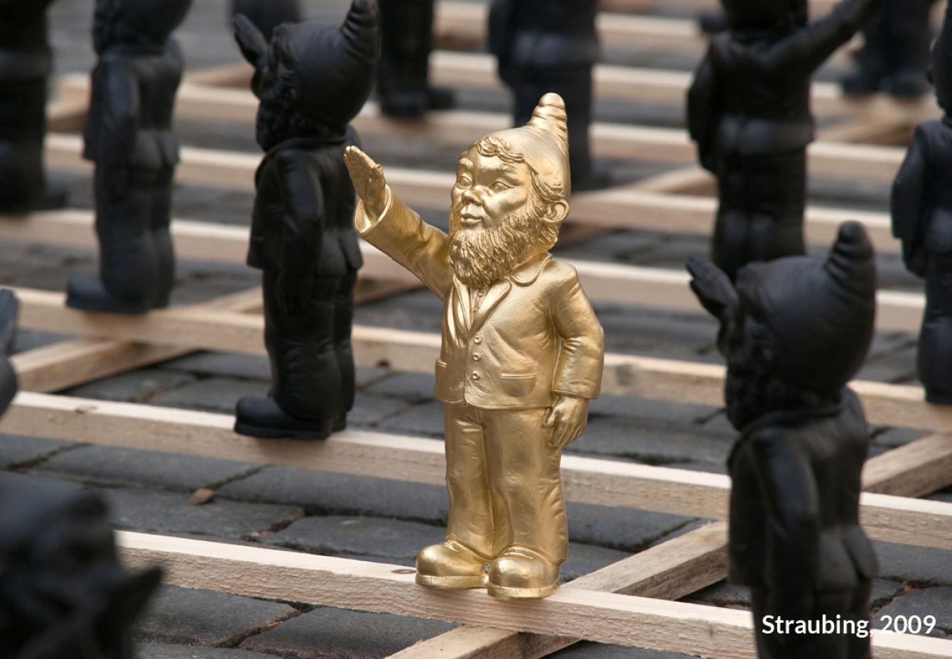 Wer also die entsprechenden Kommunikationscodes, den Missbrauch von Gesten und Ritualen nicht durchschaut, begibt sich selbst in Gefahr, vereinnahmt zu werden. Der „Poisoned-Zwerg“ ist ein kommunikativer Impuls zur Auseinandersetzung und zum Diskurs. Er fordert uns heraus, Fragen über die Parameter von Realitätswahrnehmung zu stellen und darüber nachzudenken. Wie wir mit dieser – bis heute brandaktuellen – Anregung umgehen liegt letztlich an uns selbst.