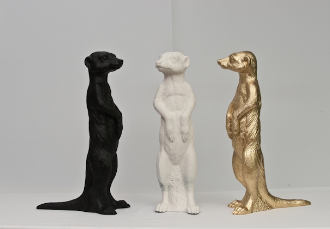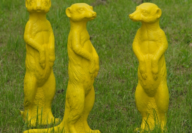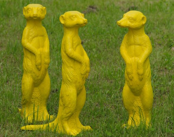 Ein „Betriebsausflug“ der besonderen Art hat das Hofgut Hohenkarpfen zum Ziel: Am Sonntag, 13. September, um 11 Uhr eröffnet der international renommierte Bildhauer und Aktionskünstler Ottmar Hörl eine Open-Air-Ausstellung. 1000 etwa lebensgroße Erdmännchen wird er bis dahin auf den Wiesen rund um Hotel und Kunststiftung installiert haben. Warum Erdmännchen? Die putzigen Gesellen wecken bei allen, die sie beobachten können, positive Gefühle – vielleicht, weil ihr Verhalten oft dem menschlichen ähnelt. Unermüdlich flitzen sie umher, verschwinden in ihren unterirdischen Bauten, tauchen plötzlich ganz woanders wieder auf, graben, spielen, nehmen Sonnenbäder, beschäftigen Babysitter oder unterrichten den Nachwuchs im Beutemachen. Und immer hält ein Mitglied der Sippe Wache: aufgerichtet behält es die Umgebung im Blick. In eben dieser typischen Pose des „Männchen-Machens“ hat Ottmar Hörl seine Erdmännchen fixiert. So kommt zu den vielen öffentlichen Kunstinszenierungen des Nürnberger Professors eine mit ganz eigener Qualität dazu. Die Erdmännchen, die eigentlich in den kargen Savannen und Wüsten des südlichen Afrika zuhause sind, setzen mit ihrer sonnengelben Farbigkeit ebenso heitere wie befremdliche Akzente in der frühherbstlichen Landschaft um den Hohenkarpfen. Vielleicht erinnern Hörls Kunststoffskulpturen auch daran, dass die Welt zum globalen Dorf geworden ist, denn schließlich pflegt das benachbarte Trossingen seit 1997 eine Städtepartnerschaft mit der Hauptstadt Namibias, Windhuk. Die Kunst macht es möglich: Dieses Mal unternimmt also statt offizieller Vertreter eine stattliche Delegation von Erdmännchen einen „Betriebsausflug“.