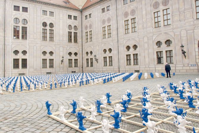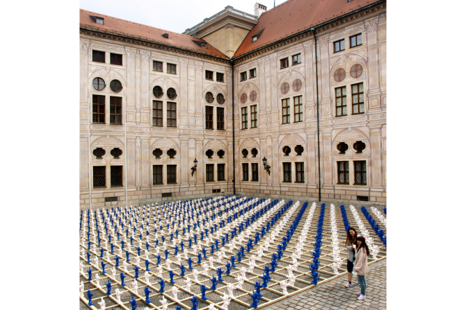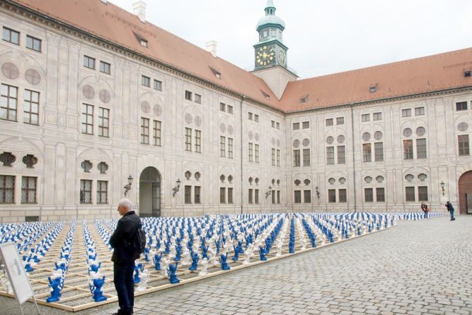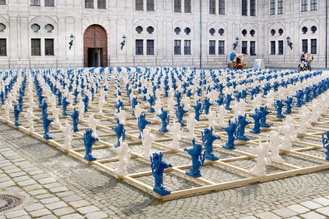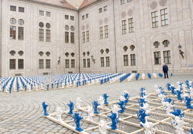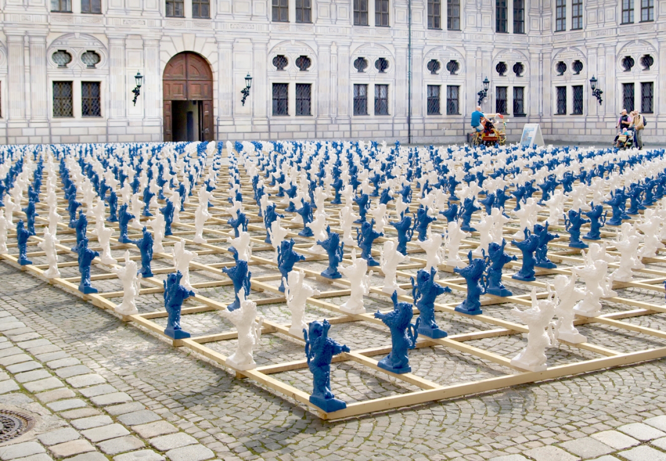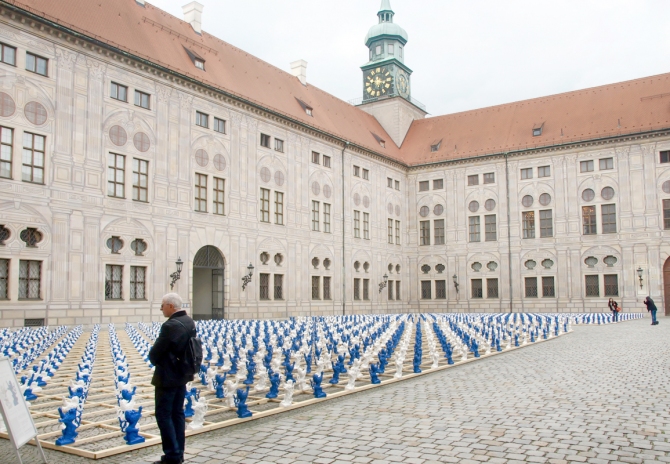 2.000 serielle Löwen-Skulpturen bilden den Auftakt zur Ausstellung der Bayerischen Schlösserverwaltung „Gut gebrüllt – Löwen aus Bayerns Schlössern und Burgen“. Mit der temporären Installation aus etwa 40 cm hohen blauen und weißen Figuren verwandelt Ottmar Hörl den Kaiserhof der Residenz München in einen Identität stiftenden, kommunikativen Kunst-Schau-Platz.