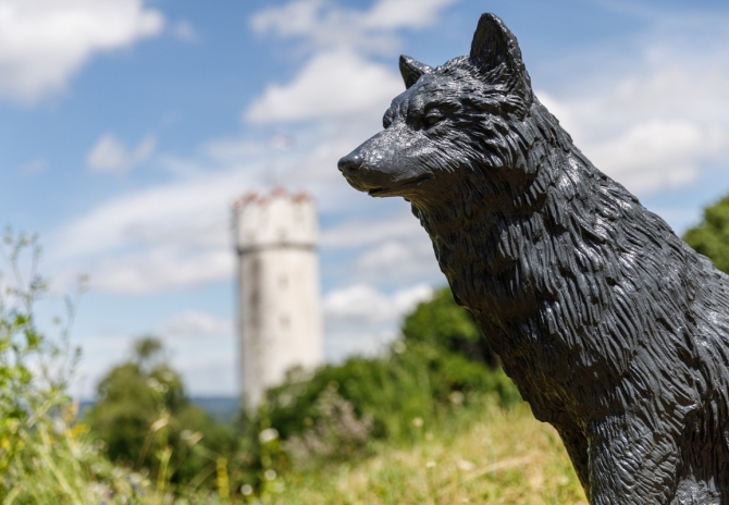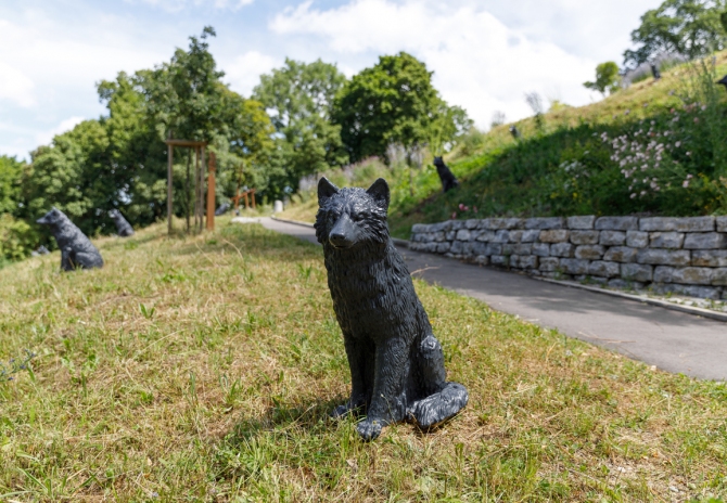 Mit dem Projekt „Wölfe in der Stadt“ hat der international renommierte Künstler Ottmar Hörl eine ortspezifische Installation entwickelt, die das aktuelle Thema – nämlich die Rückkehr der Wölfe – in Form von seriellen Wolfsskulpturen aufgreift. Einhundert Wölfe haben das Terrain am „Veitsburghang“ erobert und spähen von oben auf die mittelalterliche Stadt. Die Ansammlung der Wölfe, als raumgreifende Setzung im öffentlichen Raum, verkörpert metaphorisch die aktuelle Annäherung von Mensch und Wolf und übersetzt diese in ein eindrucksvolles Bild.