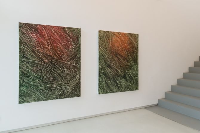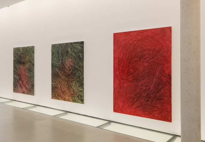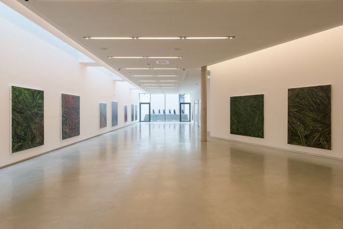 Bei Ottmar Hörls malerischer Werkreihe (seit 2017) handelt es sich um gegenstandslose Malerei in monochromen Farbtönen. Titel, Struktur und Farbigkeit lassen an pflanzliche Strukturen, an Natur oder auch an Albrecht Dürers „Das große Rasenstück“ denken. Auch in der Fotografie entwickelt Ottmar Hörl seit 1982 innovative Methoden und verzichtet auf die individuelle Künstlerhandschrift. Nicht das Auge des Fotografen erfasst die Landschaft durch den Sucher, sondern die Kamera, die sich in Bewegung befindet. Das so entstandene fotografische Bild einer Landschaft löst sich in Farbstrudeln auf. All dies führt zu einer erweiterten Definition von Fotografie und dem Versuch, „der menschlichen Absicht in einer von Apparaten beherrschten Welt Raum zu verschaffen“ (Vilém Flusser, Für eine Philosophie der Fotografie).